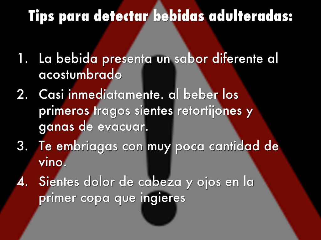 SÍNTOMAS AL INGERIR ALGUNA BEBIDA ADULTERADA: