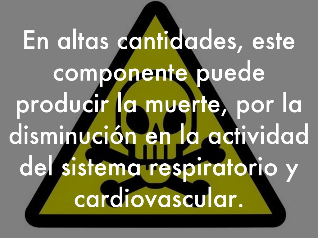 En altas cantidades, este componente puede producir la muerte, por la disminución en la actividad del sistema respiratorio y cardiovascular.
