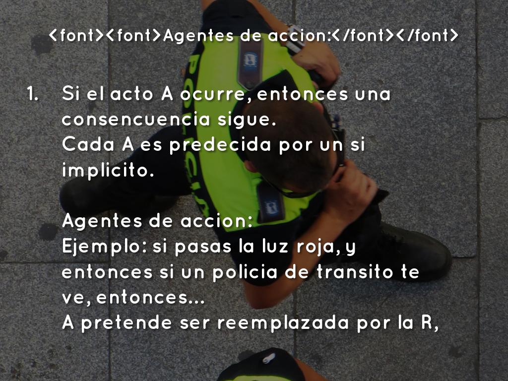 Ejemplo: si pasas la luz roja, y entonces si un policia de transito te ve, entonces…