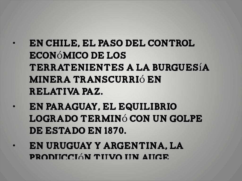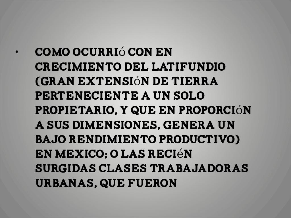 Como ocurrió con en crecimiento del latifundio (gran extensión de tierra perteneciente a un solo propietario, y que en proporción a sus dimensiones, genera un bajo rendimiento productivo) en Mexico; o las recién surgidas clases trabajadoras urbanas, que fueron duramente explotadas.