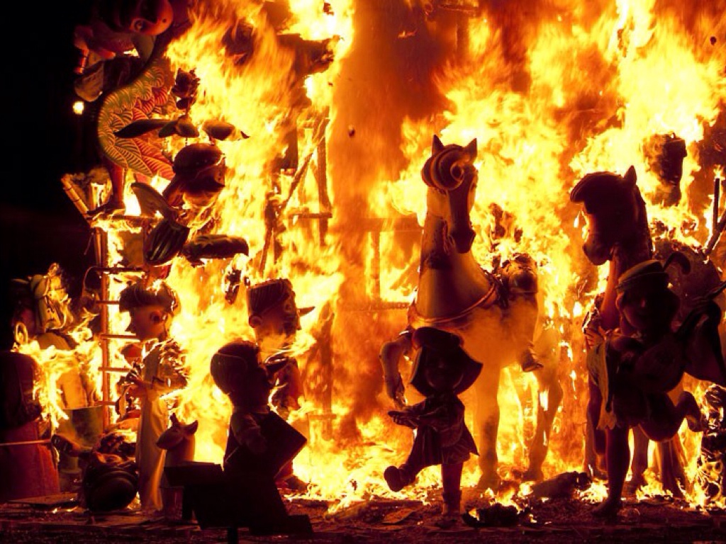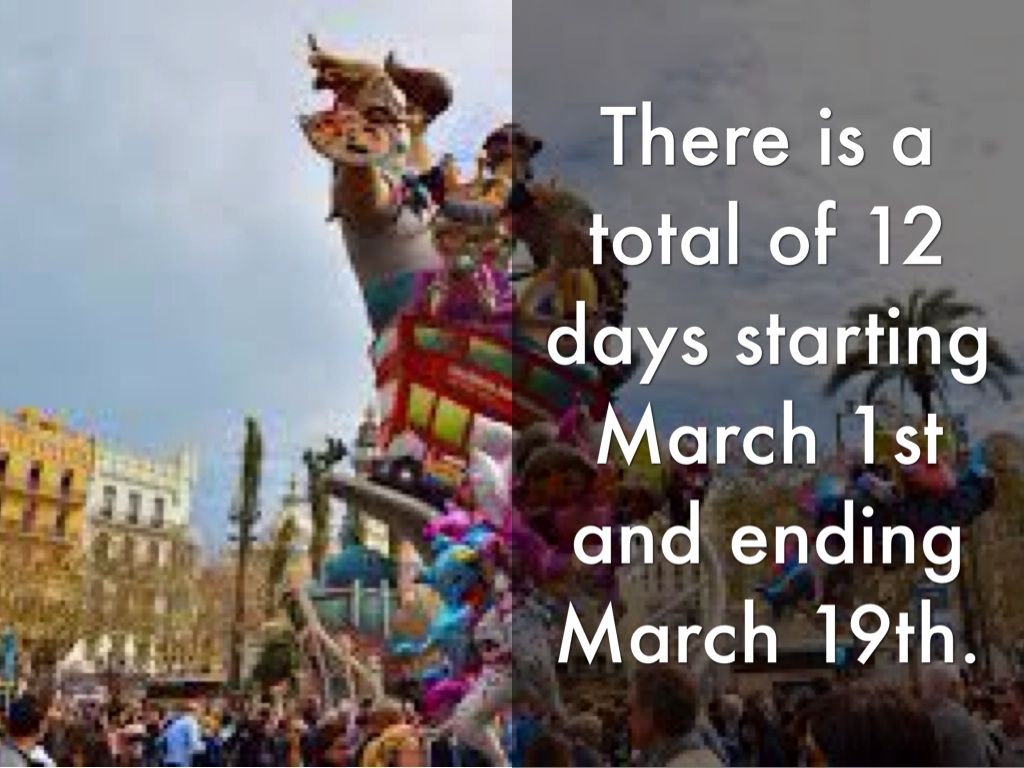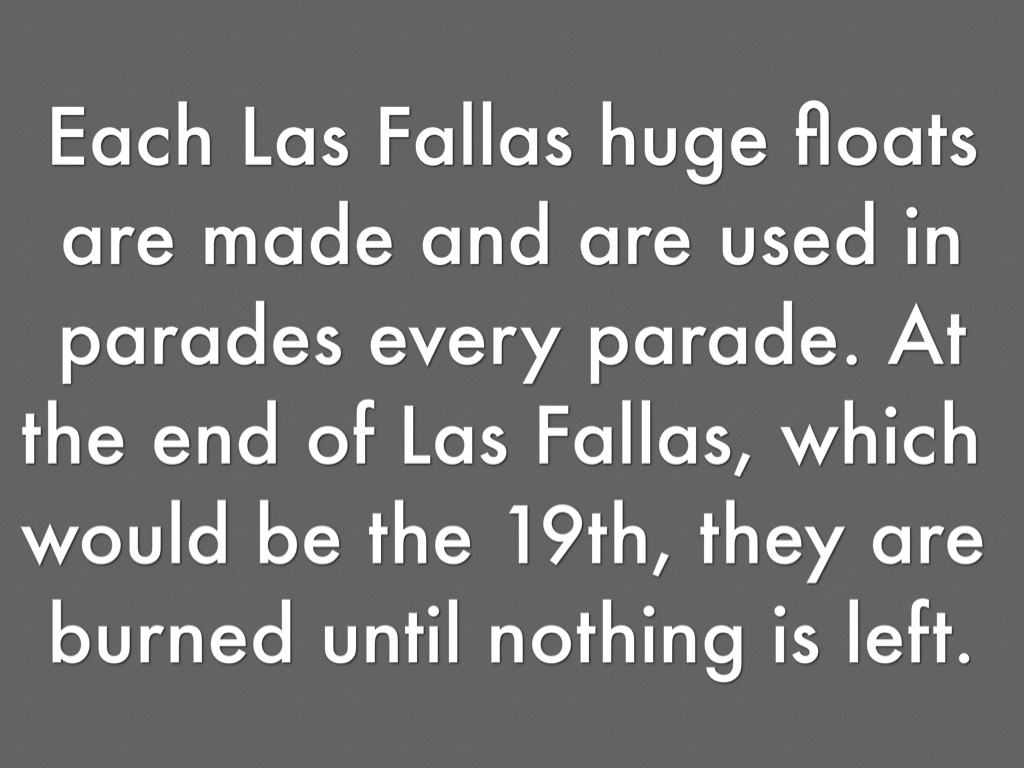 Each Las Fallas huge floats are made and are used in parades every parade. At the end of Las Fallas, which would be the 19th, they are burned until nothing is left.
