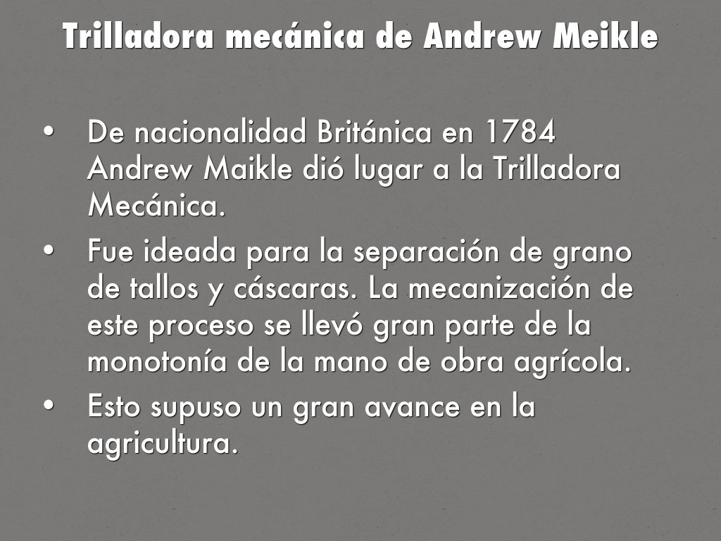De nacionalidad Británica en 1784 Andrew Maikle dió lugar a la Trilladora Mecánica.