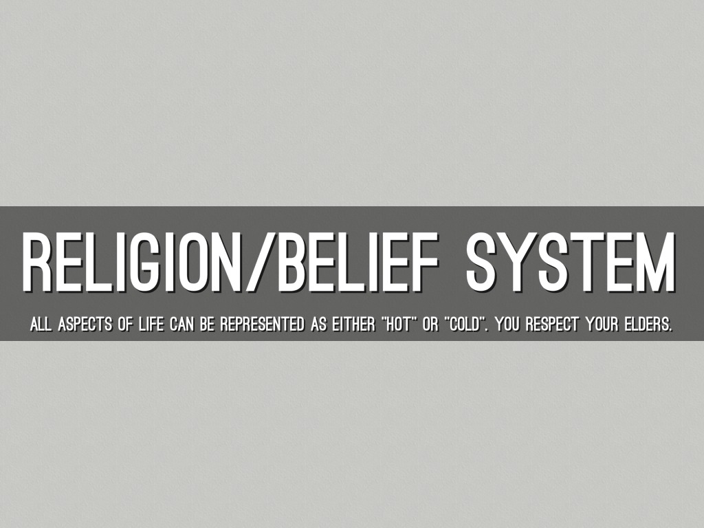 ALL ASPECTS OF LIFE CAN BE REPRESENTED AS EITHER "HOT" OR "COLD". YOU RESPECT YOUR ELDERS.