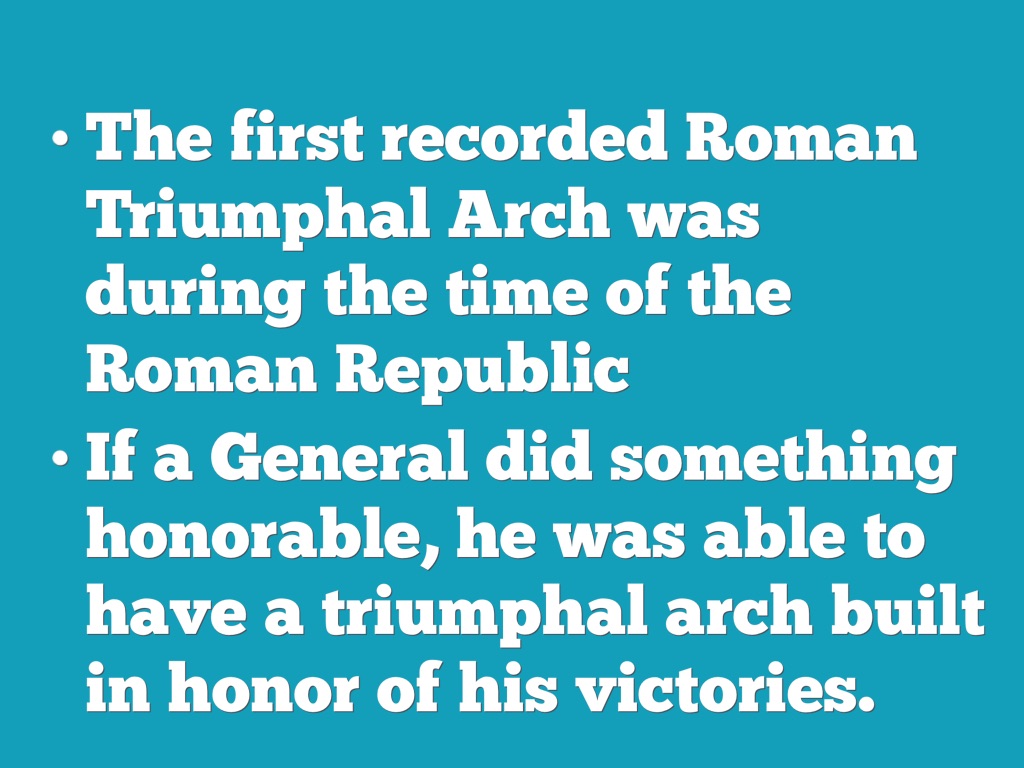 The first recorded Roman Triumphal Arch was during the time of the Roman Republic