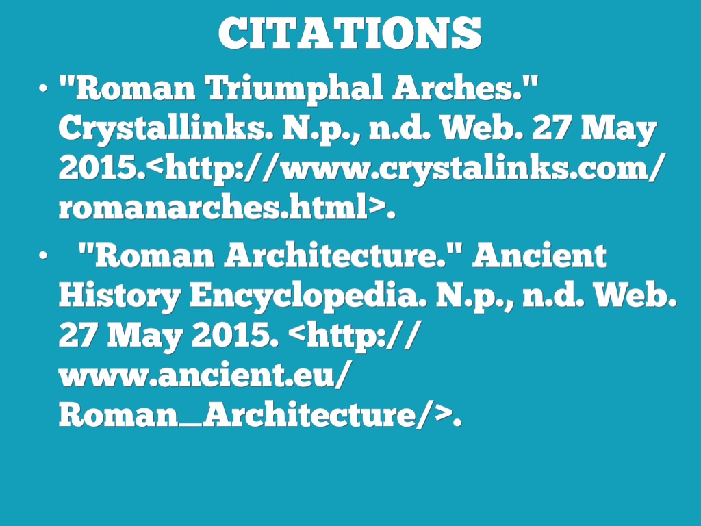 "Roman Triumphal Arches." Crystallinks. N.p., n.d. Web. 27 May 2015.