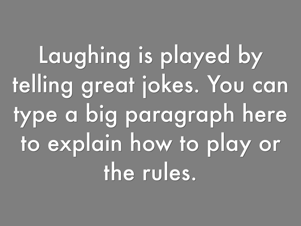 Laughing is played by telling great jokes. You can type a big paragraph here to explain how to play or the rules.