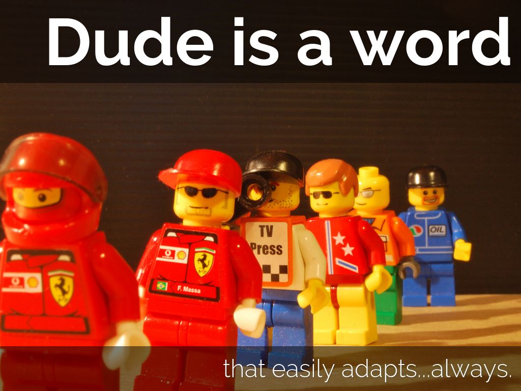 Now that we have practiced the practical uses of the word dude, I challenge you to all use it today in a sentence with anyone. Let me know how it goes--it would be great if this went viral across USP for no reason except this moment.