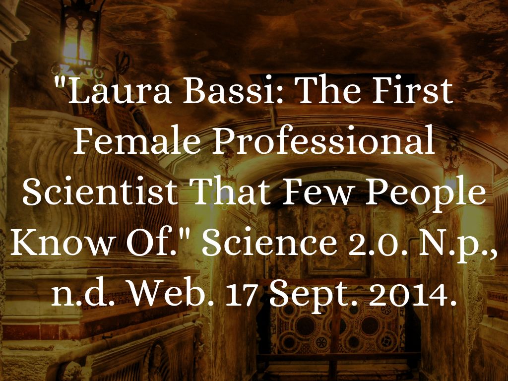 "Laura Bassi: The First Female Professional Scientist That Few People Know Of." Science 2.0. N.p., n.d. Web. 17 Sept. 2014.