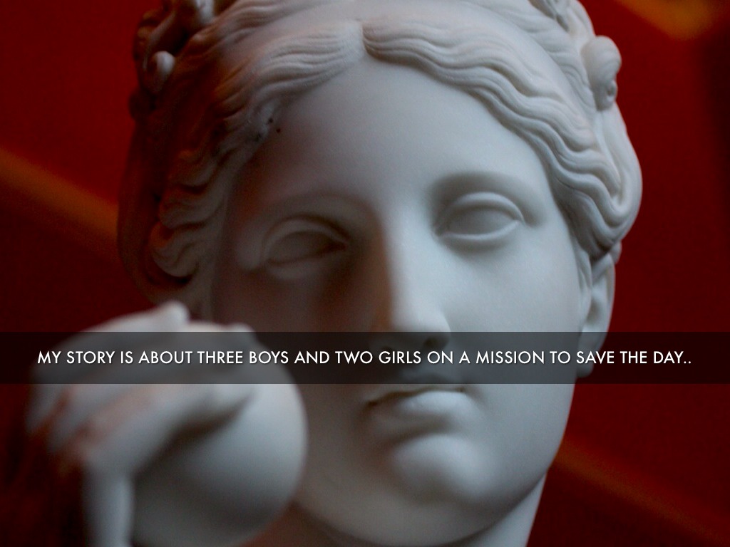 MY STORY IS ABOUT THREE BOYS AND TWO GIRLS ON A MISSION TO SAVE THE DAY..