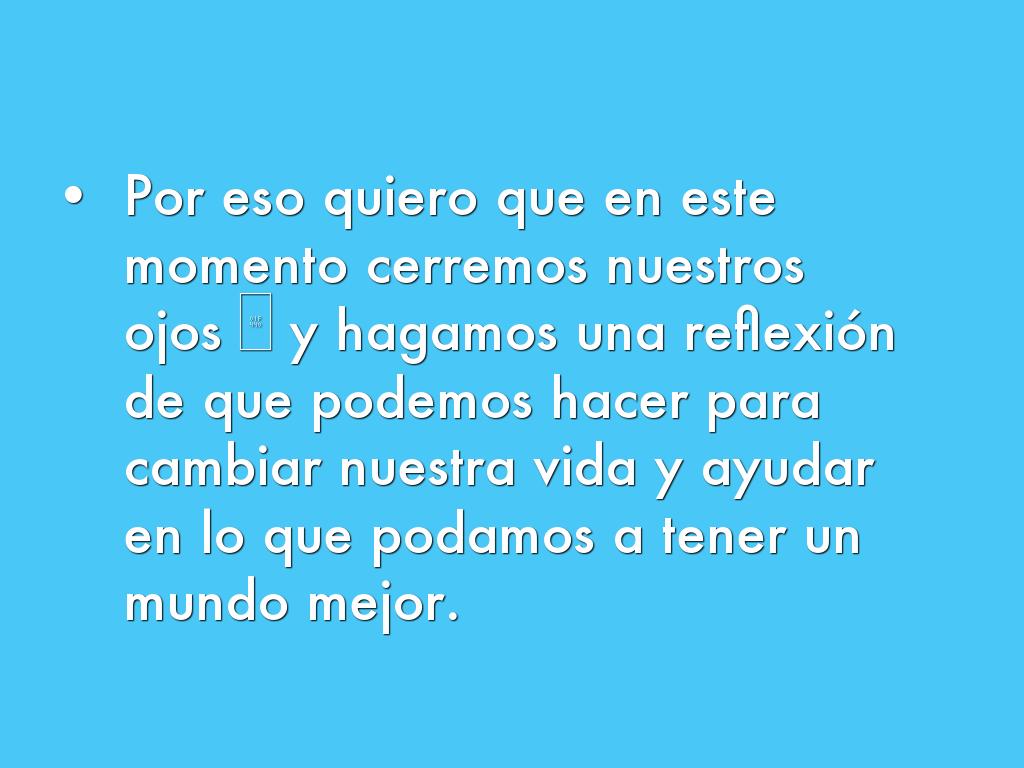 Por eso quiero que en este momento cerremos nuestros ojos 👀 y hagamos una reflexión de que podemos hacer para cambiar nuestra vida y ayudar en lo que podamos a tener un mundo mejor.