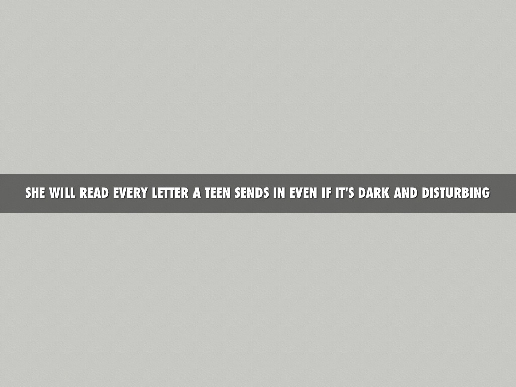 SHE WILL READ EVERY LETTER A TEEN SENDS IN EVEN IF IT'S DARK AND DISTURBING