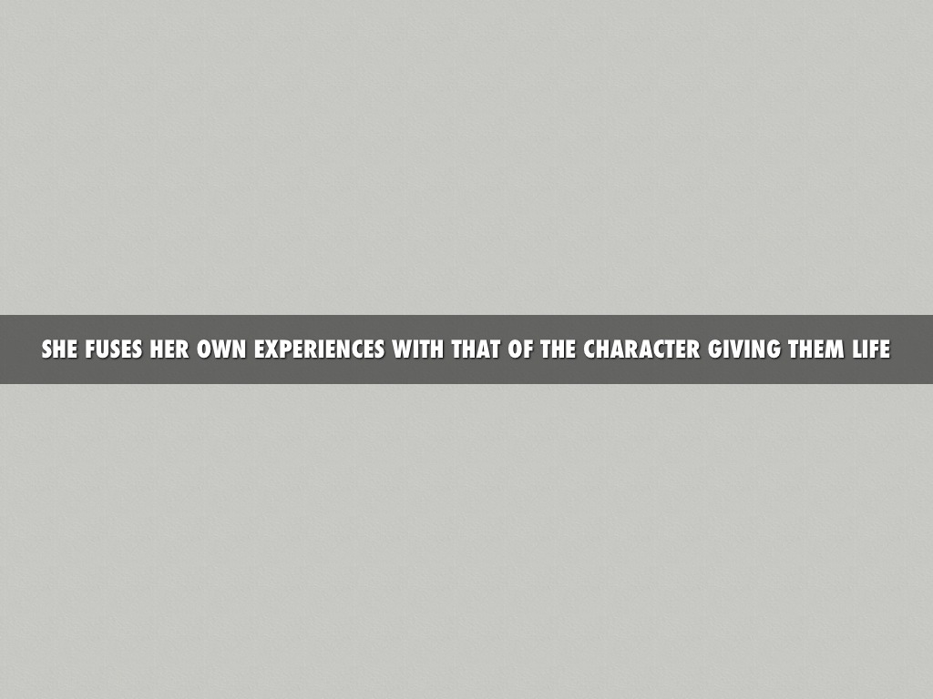 SHE FUSES HER OWN EXPERIENCES WITH THAT OF THE CHARACTER GIVING THEM LIFE