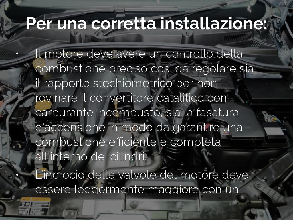 - Il motore deve avere un controllo della combustione preciso così da regolare sia il rapporto stechiometrico per non rovinare il convertitore catalitico con carburante incombusto, sia la fasatura d'accensione in modo da garantire una combustione efficiente e completa all'interno dei cilindri.