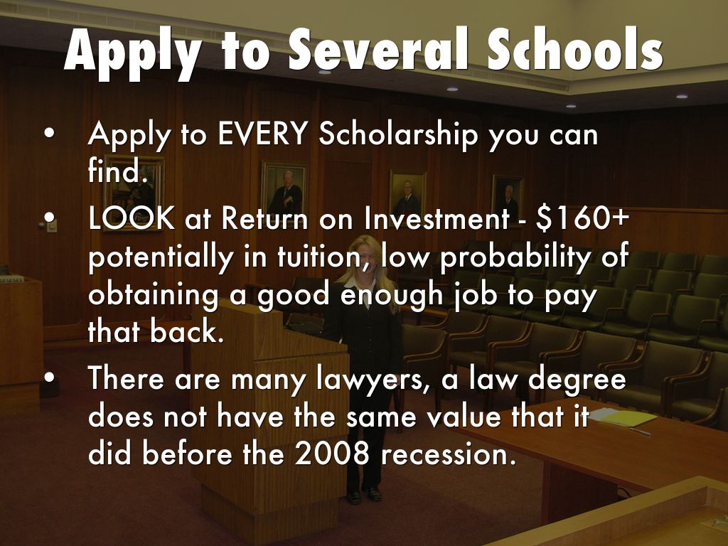 There are many lawyers, a law degree does not have the same value that it did before the 2008 recession.