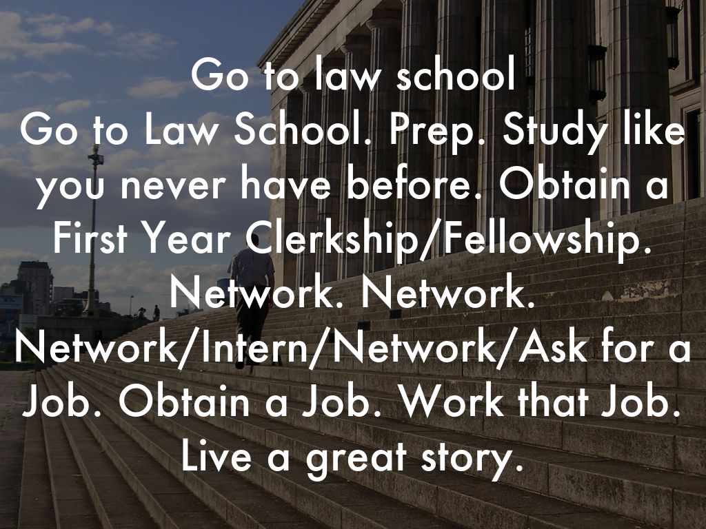 Go to Law School. Prep. Study like you never have before. Obtain a First Year Clerkship/Fellowship. Network. Network. Network/Intern/Network/Ask for a Job. Obtain a Job. Work that Job. Live a great story.