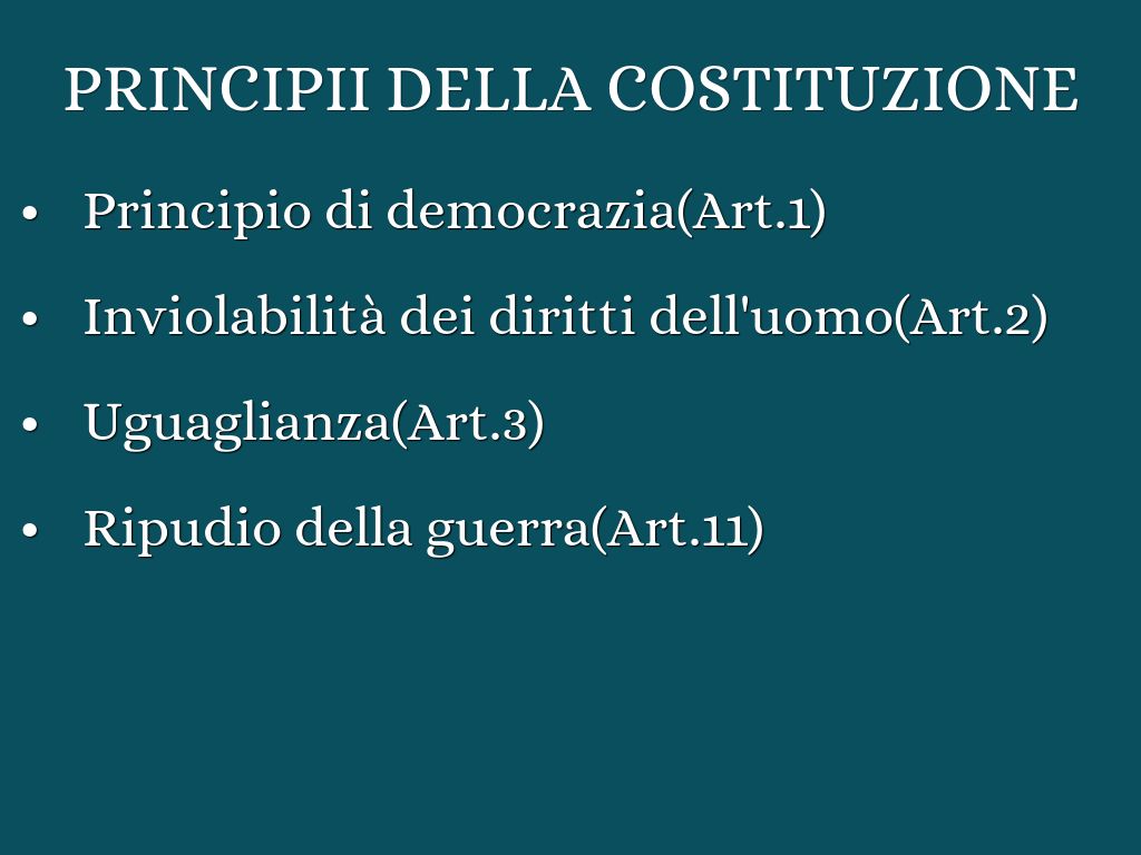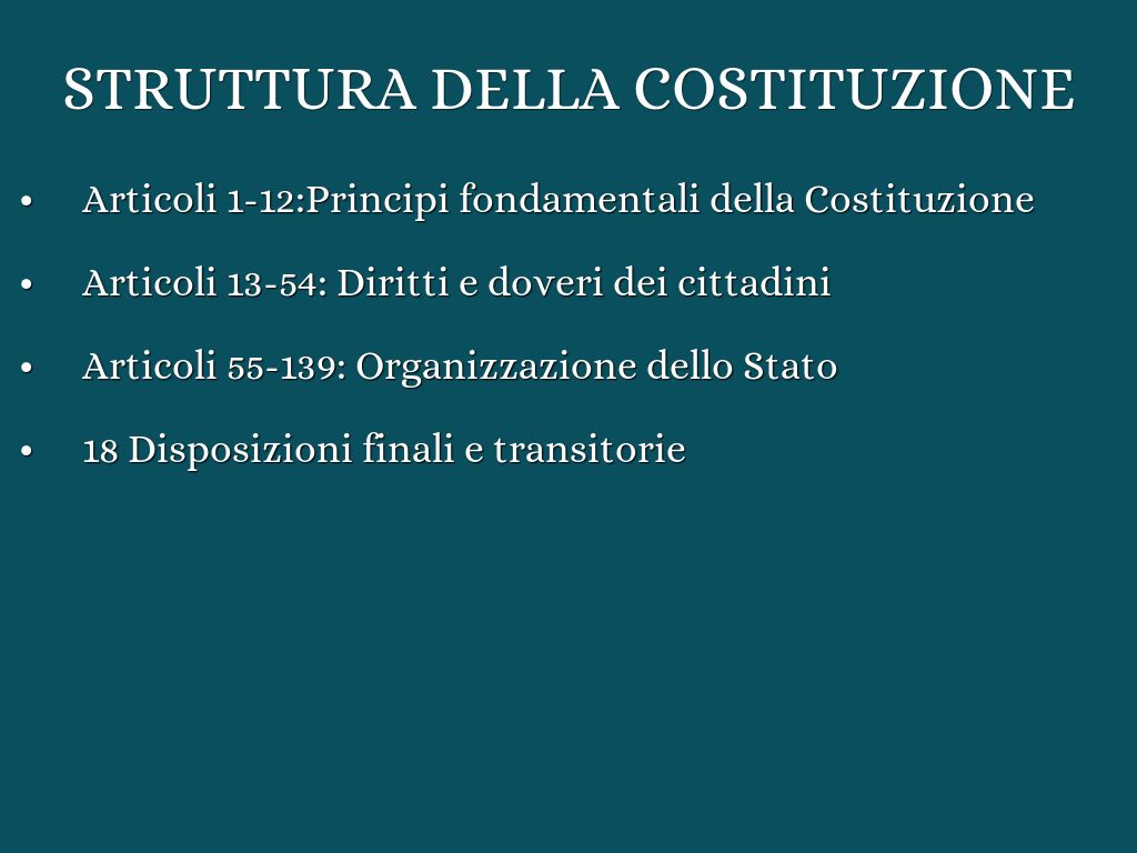 - Articoli 1-12:Principi fondamentali della Costituzione