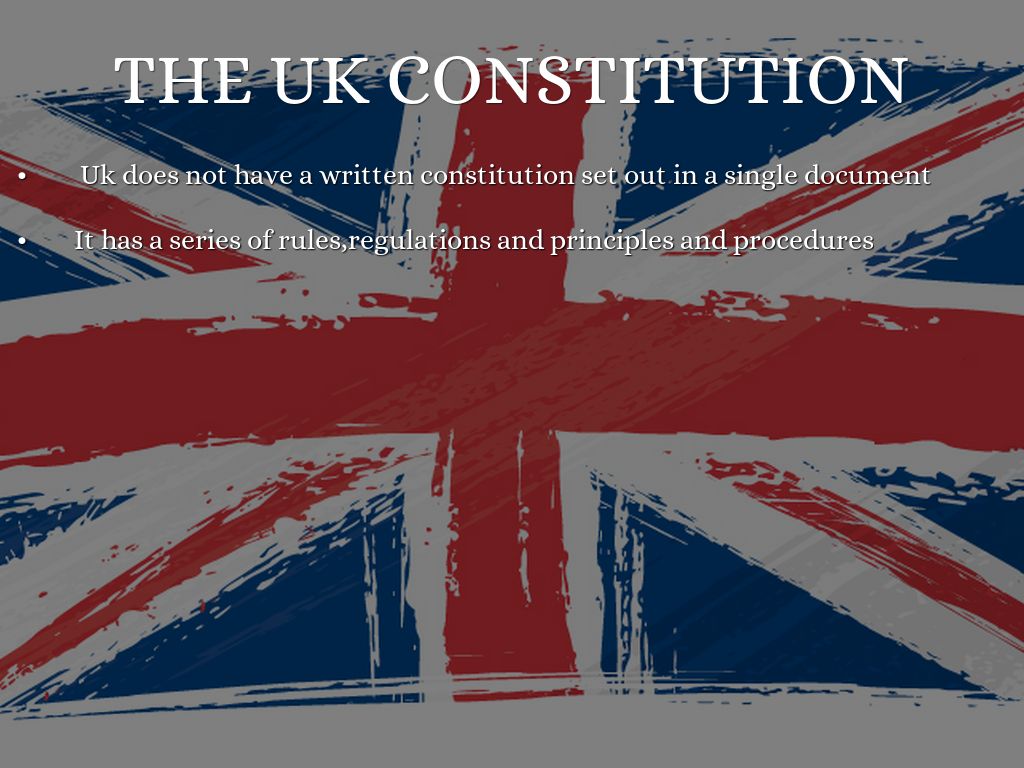 - Uk does not have a written constitution set out in a single document