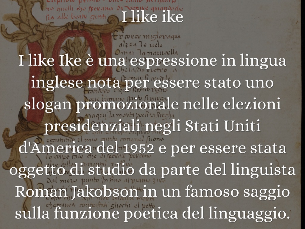 I like Ike è una espressione in lingua inglese nota per essere stato uno slogan promozionale nelle elezioni presidenziali negli Stati Uniti d'America del 1952 e per essere stata oggetto di studio da parte del linguista Roman Jakobson in un famoso saggio sulla funzione poetica del linguaggio.