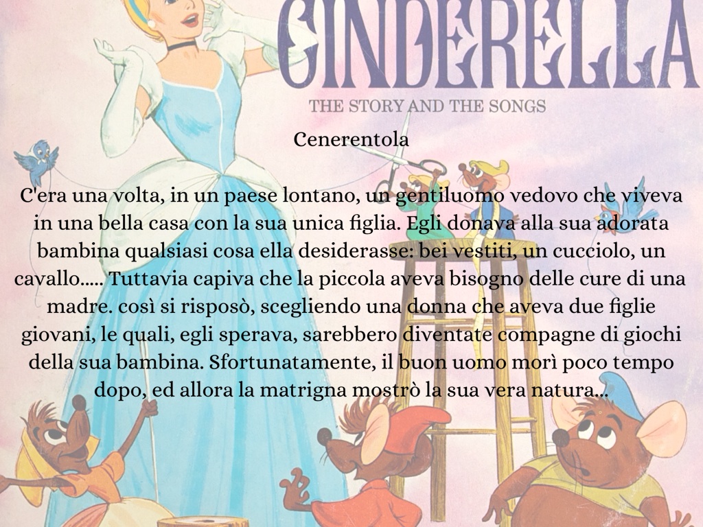 C'era una volta, in un paese lontano, un gentiluomo vedovo che viveva in una bella casa con la sua unica figlia. Egli donava alla sua adorata bambina qualsiasi cosa ella desiderasse: bei vestiti, un cucciolo, un cavallo..... Tuttavia capiva che la piccola aveva bisogno delle cure di una madre. così si risposò, scegliendo una donna che aveva due figlie giovani, le quali, egli sperava, sarebbero diventate compagne di giochi della sua bambina. Sfortunatamente, il buon uomo morì poco tempo dopo, ed allora la matrigna mostrò la sua vera natura...