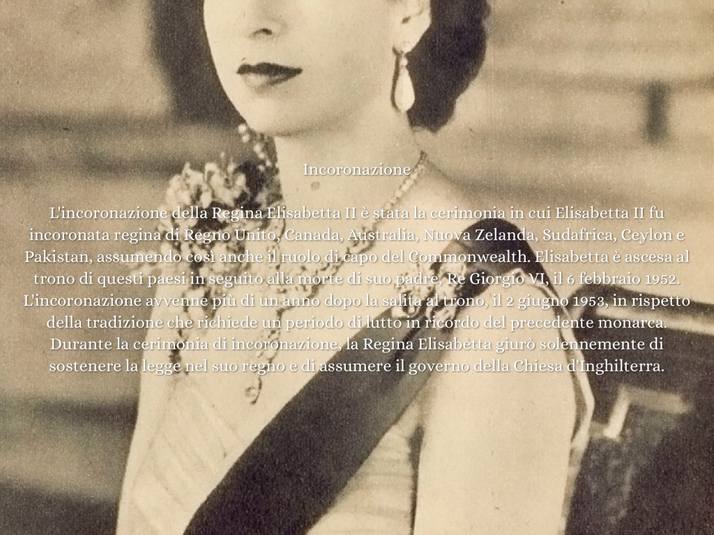 L'incoronazione della Regina Elisabetta II è stata la cerimonia in cui Elisabetta II fu incoronata regina di Regno Unito, Canada, Australia, Nuova Zelanda, Sudafrica, Ceylon e Pakistan, assumendo così anche il ruolo di capo del Commonwealth. Elisabetta è ascesa al trono di questi paesi in seguito alla morte di suo padre, Re Giorgio VI, il 6 febbraio 1952. L'incoronazione avvenne più di un anno dopo la salita al trono, il 2 giugno 1953, in rispetto della tradizione che richiede un periodo di lutto in ricordo del precedente monarca. Durante la cerimonia di incoronazione, la Regina Elisabetta giurò solennemente di sostenere la legge nel suo regno e di assumere il governo della Chiesa d'Inghilterra.