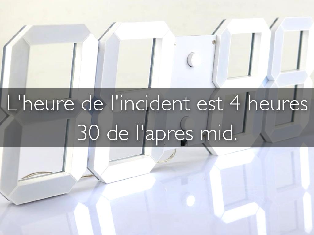 L'heure de l'incident est 4 heures 30 de l'apres mid.