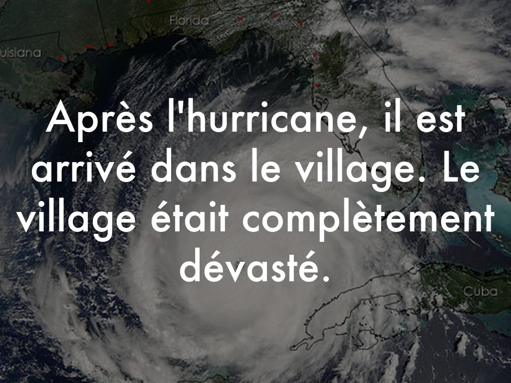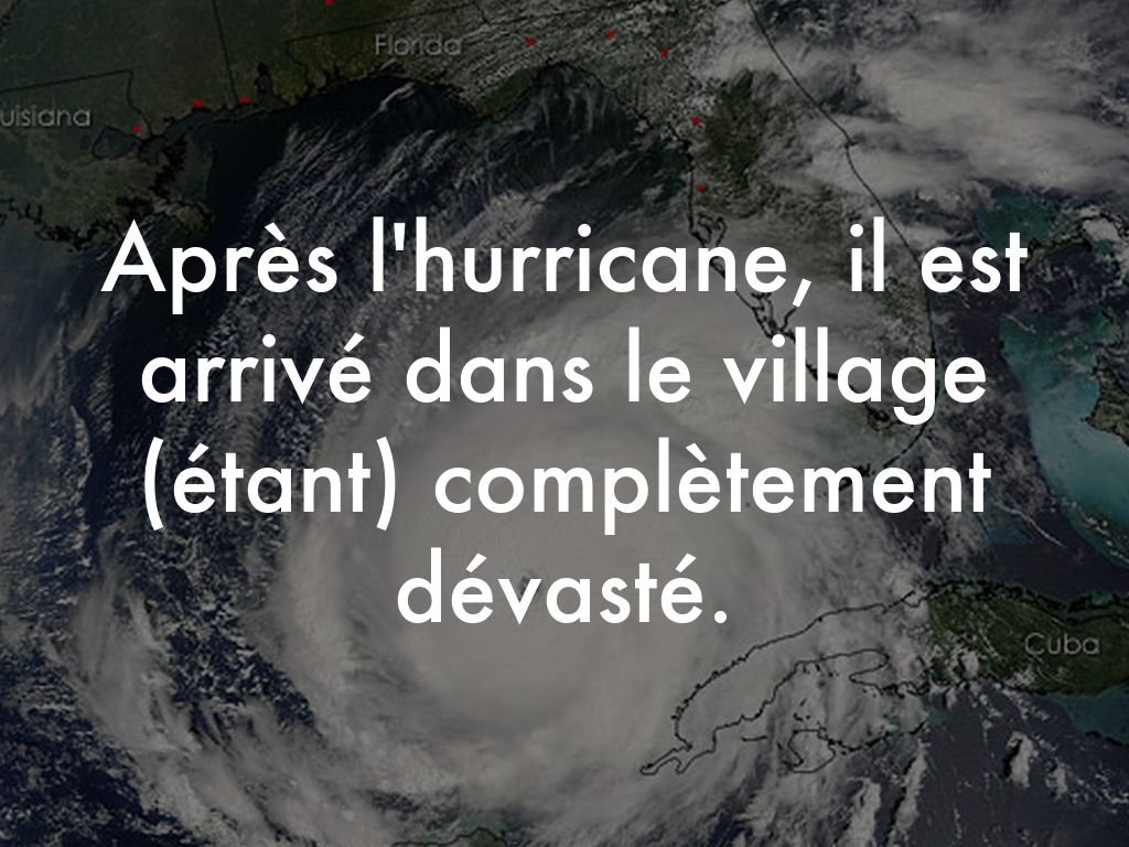 Après l'hurricane, il est arrivé dans le village (étant) complètement dévasté.