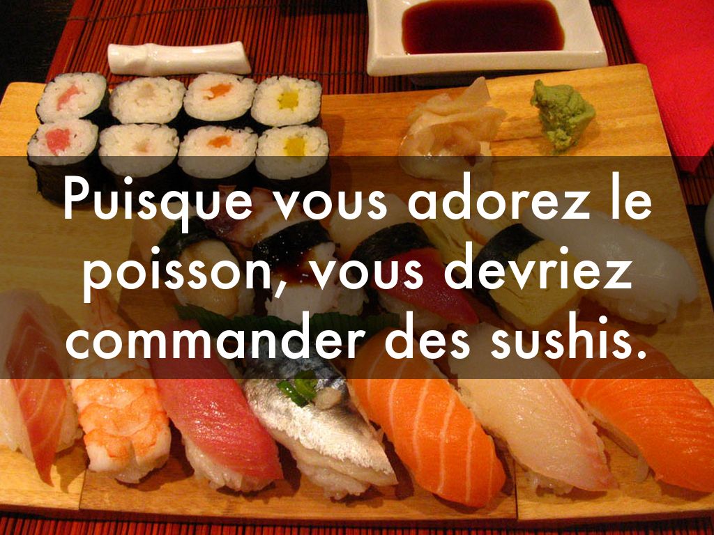 Puisque vous adorez le poisson, vous devriez commander des sushis.