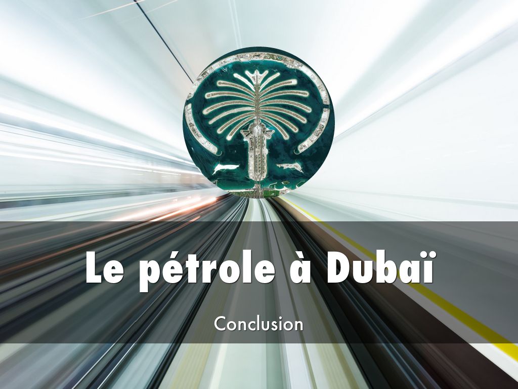 En conclusion, le pétrole de Dubaï fait plus parti du passé que du futur (à cause notamment de la chute du prix du baril de pétrole. La ville, et même le pays de manière générale se concentre plutôt sur le tourisme, le nucléaire, le pétrole n'étant plus le secteur ''phare'' de Dubaï, même si leur production reste ''correcte''. Malheureusement, les ouvriers subissent presque une forme d'esclavage dans le pays.