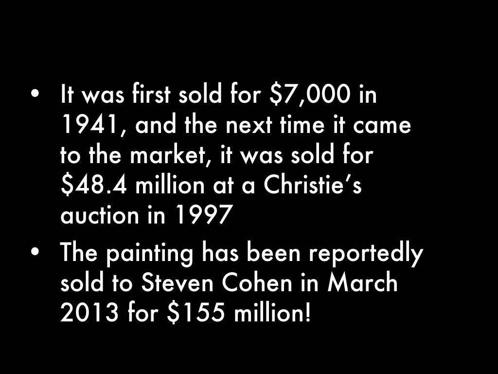 • It was first sold for $7,000 in 1941, and the next time it came to the market, it was sold for $48.4 million at a Christie’s auction in 1997