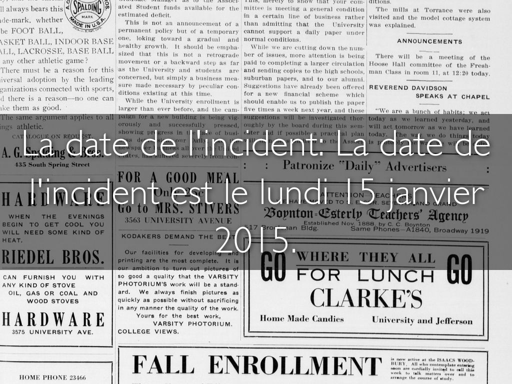 La date de l'incident: La date de l'incident est le lundi 15 janvier 2015.
