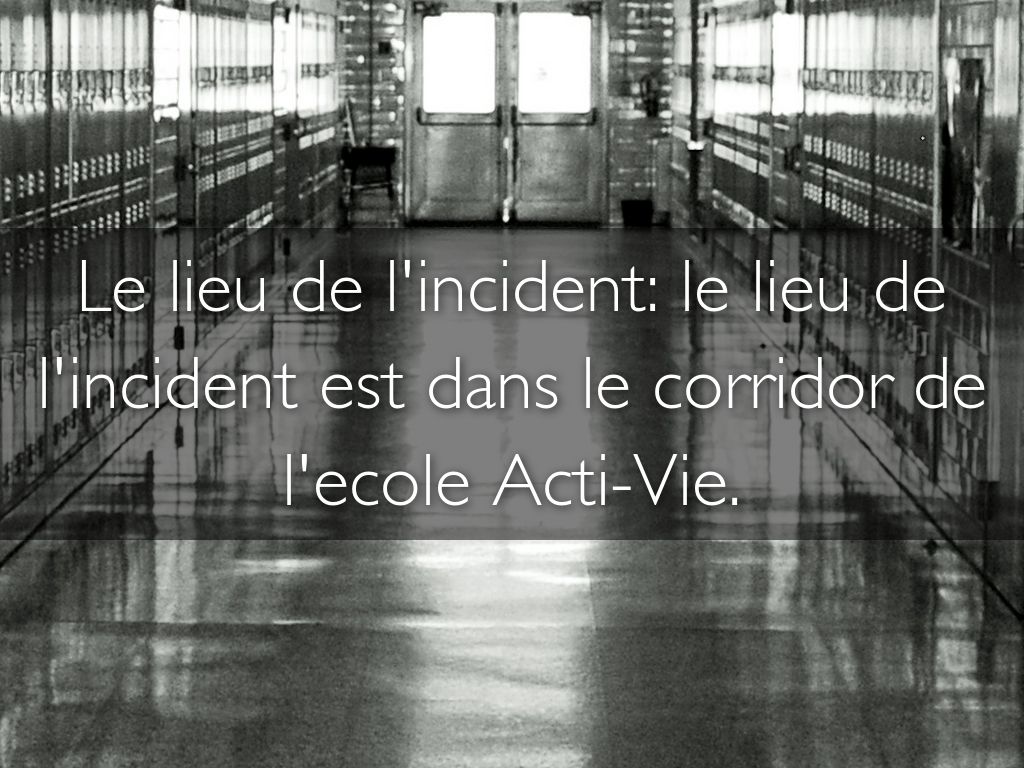 Le lieu de l'incident: le lieu de l'incident est dans le corridor de l'ecole Acti-Vie.