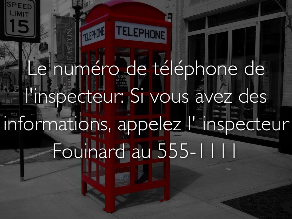 Le numéro de téléphone de l'inspecteur: Si vous avez des informations, appelez l' inspecteur Fouinard au 555-1111
