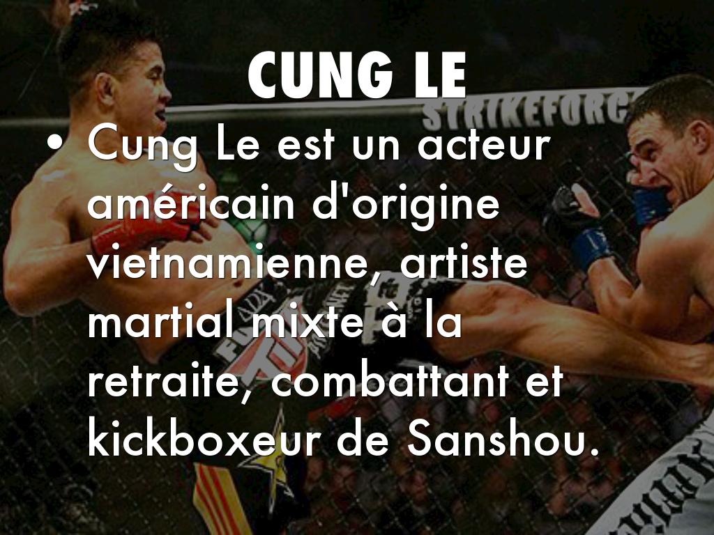 Cung Le est un acteur américain d'origine vietnamienne, artiste martial mixte à la retraite, combattant et kickboxeur de Sanshou.