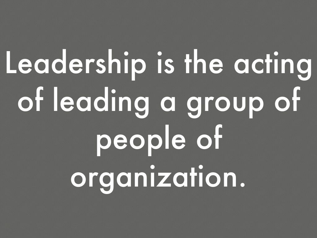 Leadership is the acting of leading a group of people of organization.