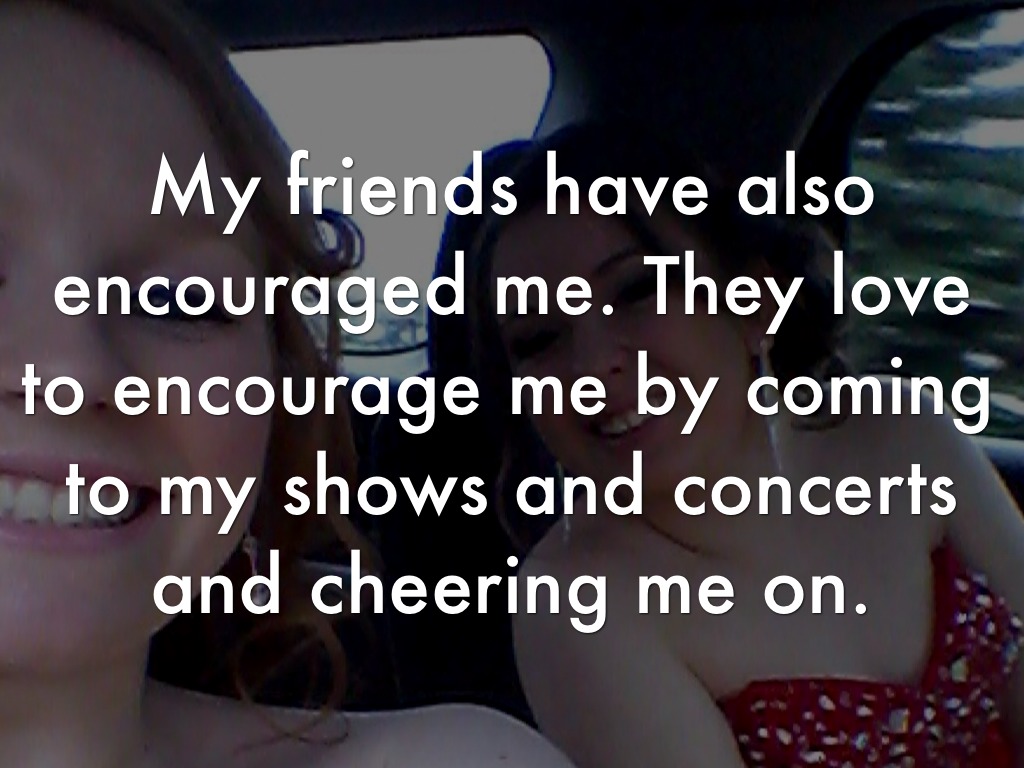 My friends have also encouraged me. They love to encourage me by coming to my shows and concerts and cheering me on.