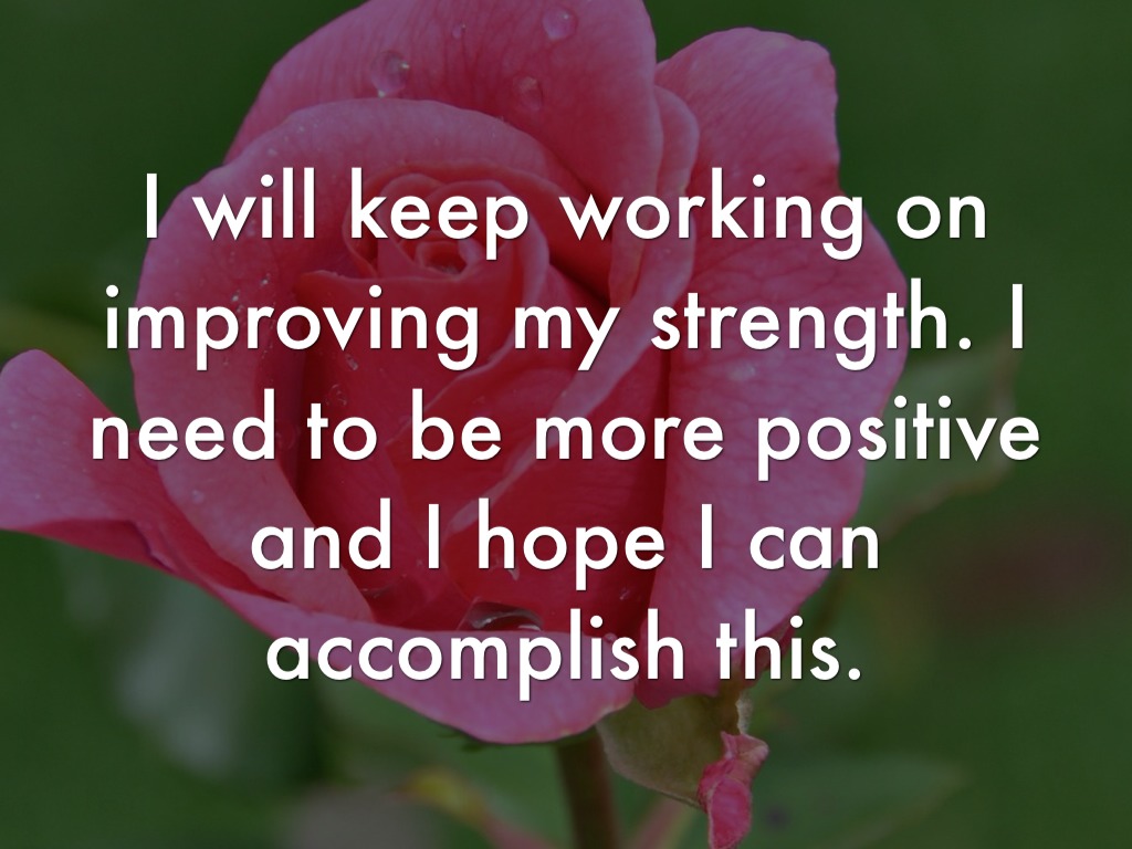 I will keep working on improving my strength. I need to be more positive and I hope I can accomplish this.