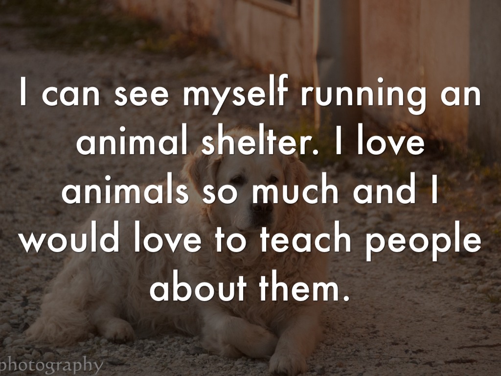 I can see myself running an animal shelter. I love animals so much and I would love to teach people about them.