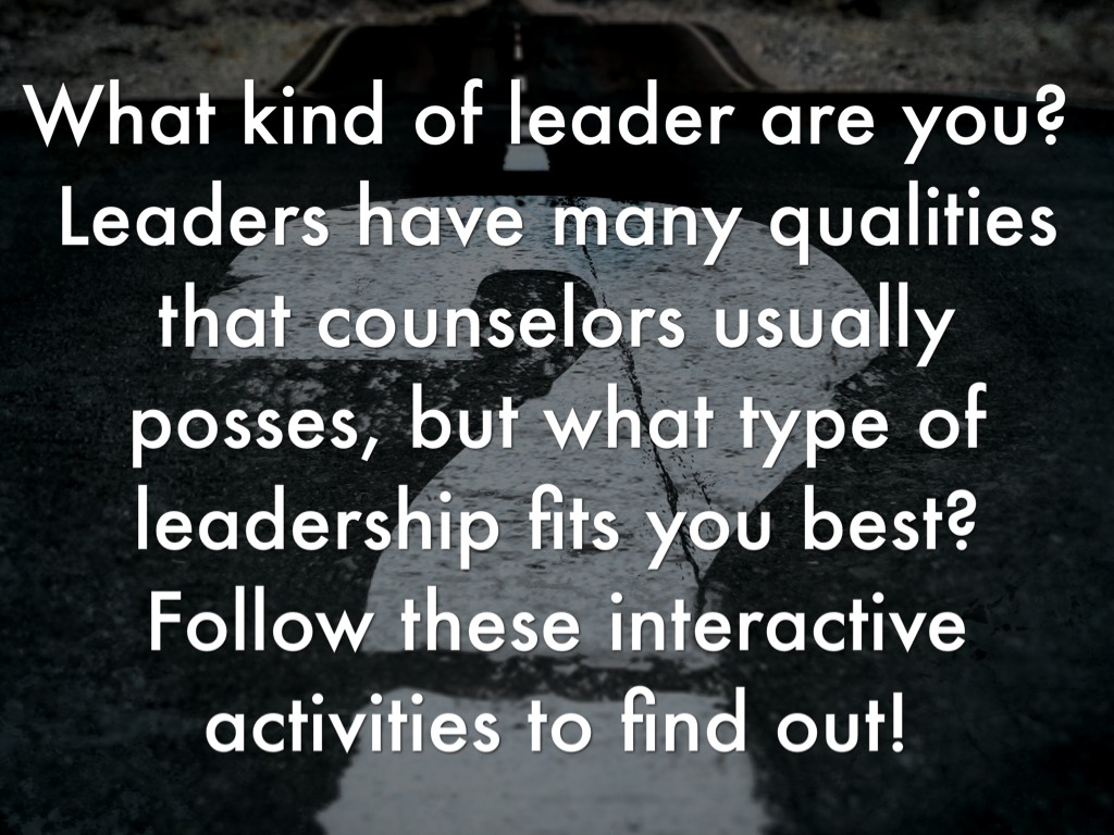 Leaders have many qualities that counselors usually posses, but what type of leadership fits you best? Follow these interactive activities to find out!