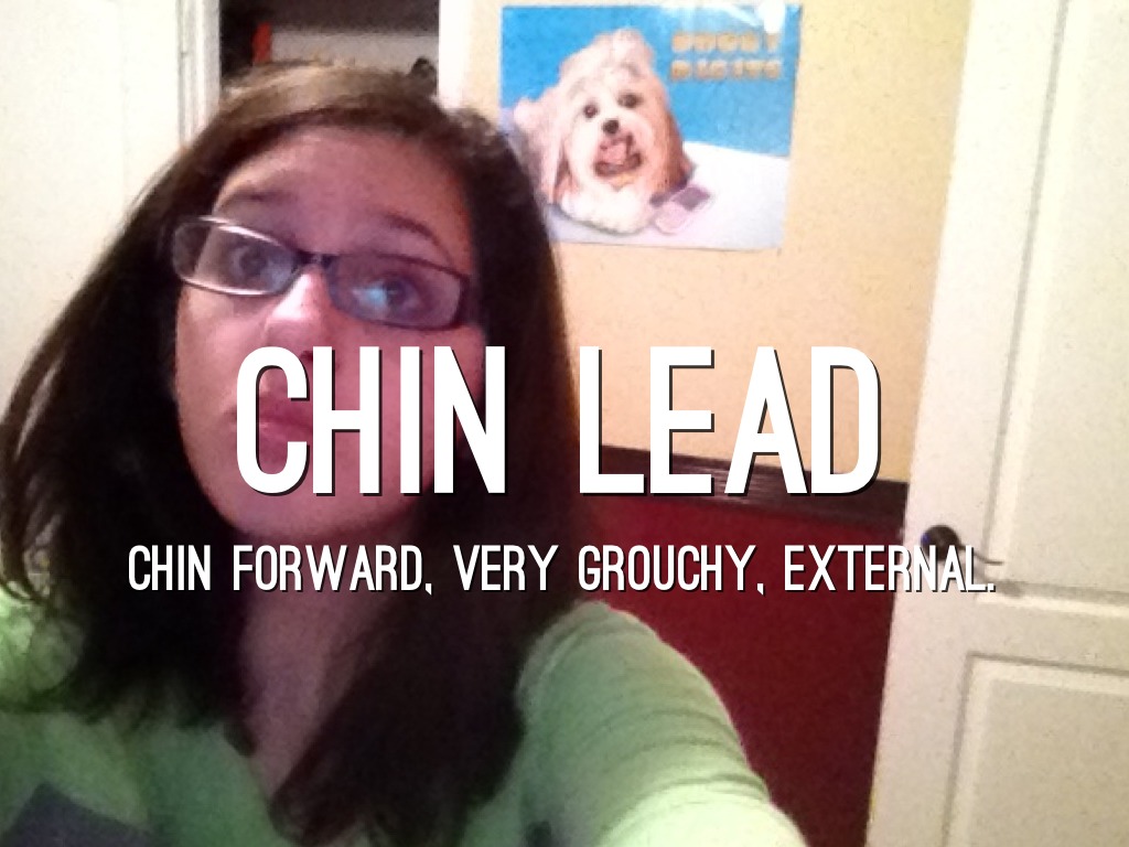 CHIN FORWARD, VERY GROUCHY, EXTERNAL.