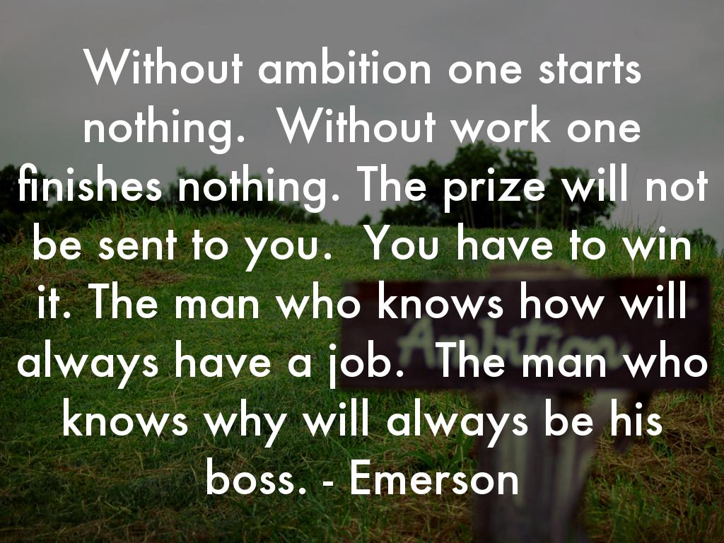 Without ambition one starts nothing. Without work one finishes nothing. The prize will not be sent to you. You have to win it. The man who knows how will always have a job. The man who knows why will always be his boss. - Emerson