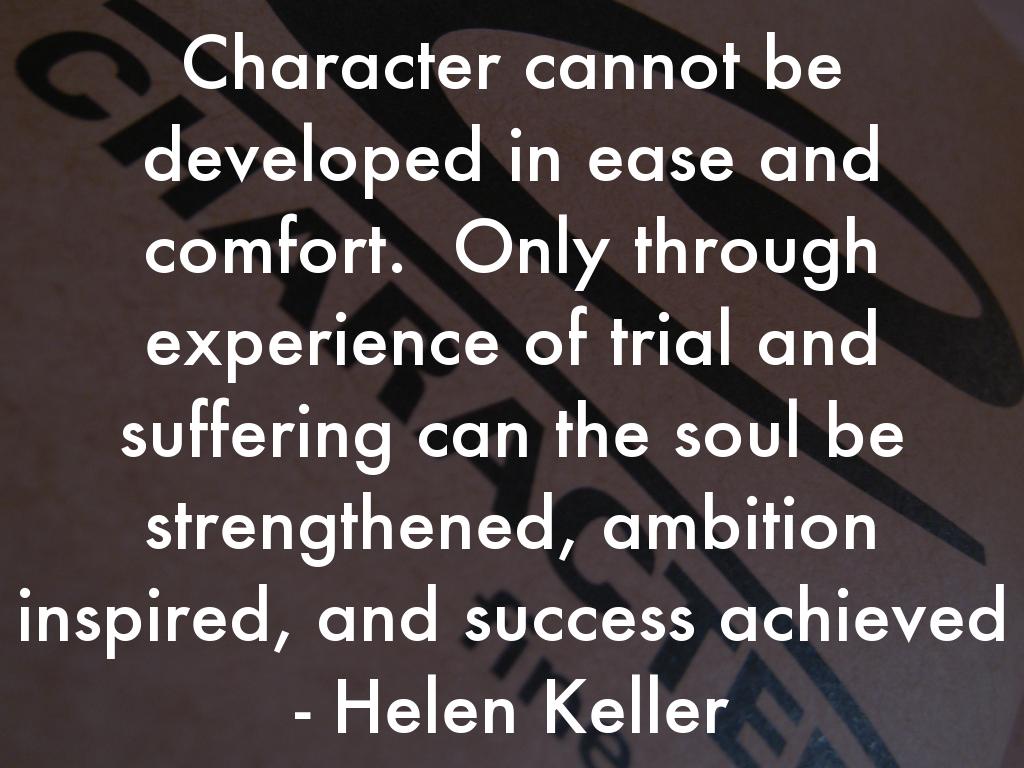 Character cannot be developed in ease and comfort. Only through experience of trial and suffering can the soul be strengthened, ambition inspired, and success achieved - Helen Keller