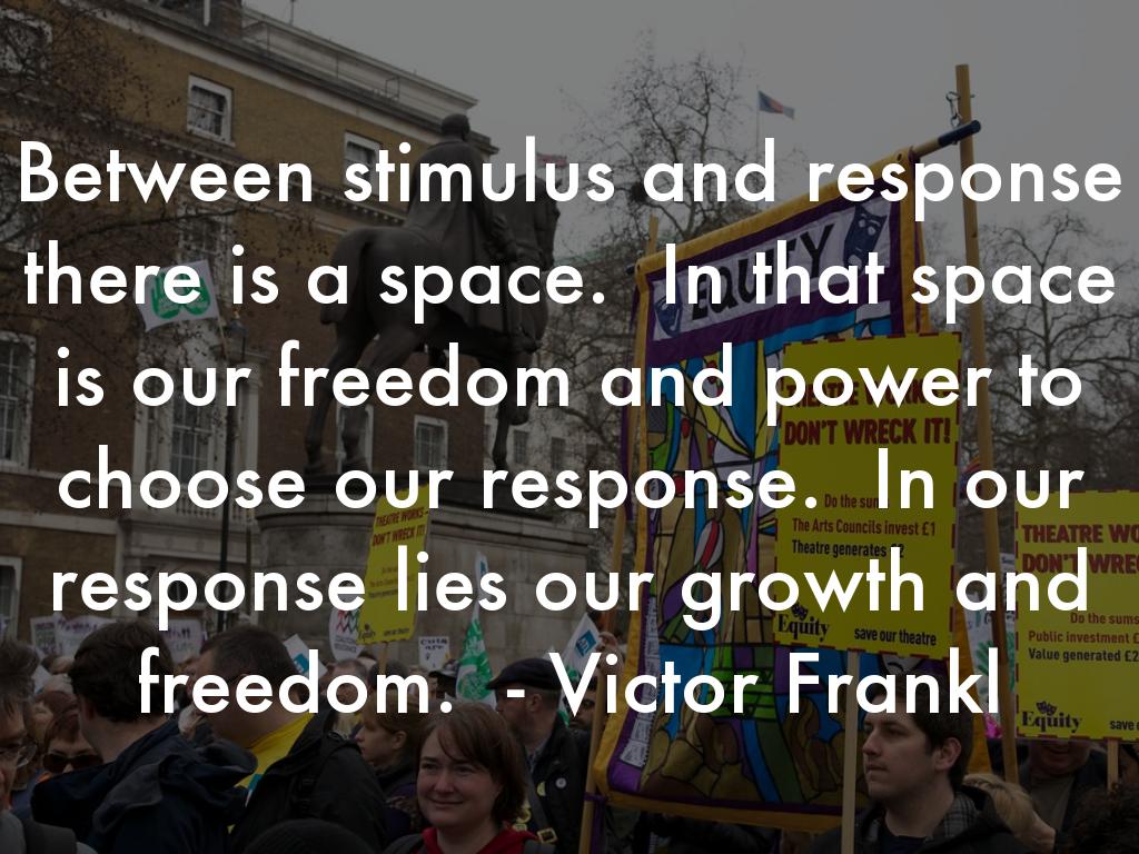 Between stimulus and response there is a space. In that space is our freedom and power to choose our response. In our response lies our growth and freedom. - Victor Frankl