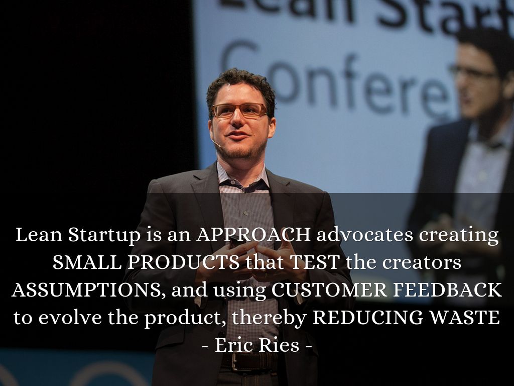 Lean Startup is an APPROACH advocates creating SMALL PRODUCTS that TEST the creators ASSUMPTIONS, and using CUSTOMER FEEDBACK to evolve the product, thereby REDUCING WASTE - Eric Ries -