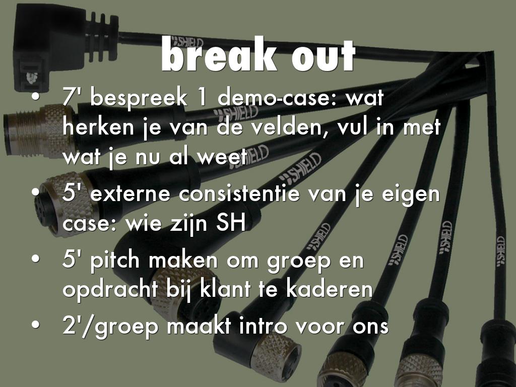 • 5' externe consistentie van je eigen case: wie zijn SH
