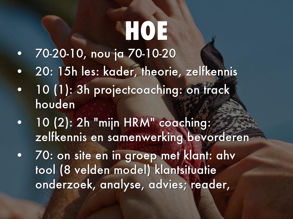 • 10 (2): 2h "mijn HRM" coaching: zelfkennis en samenwerking bevorderen