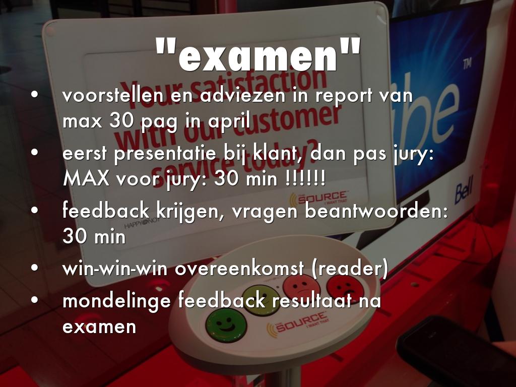 • eerst presentatie bij klant, dan pas jury: MAX voor jury: 30 min !!!!!!