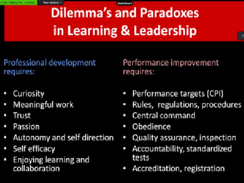 • zie het breder kader, als een levend systeem >> pestel, boven/onderstroom