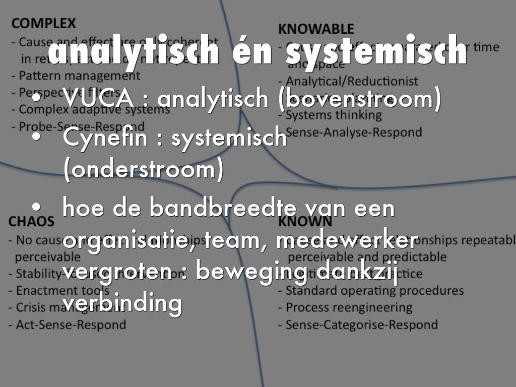 • Cynefin : systemisch (onderstroom)