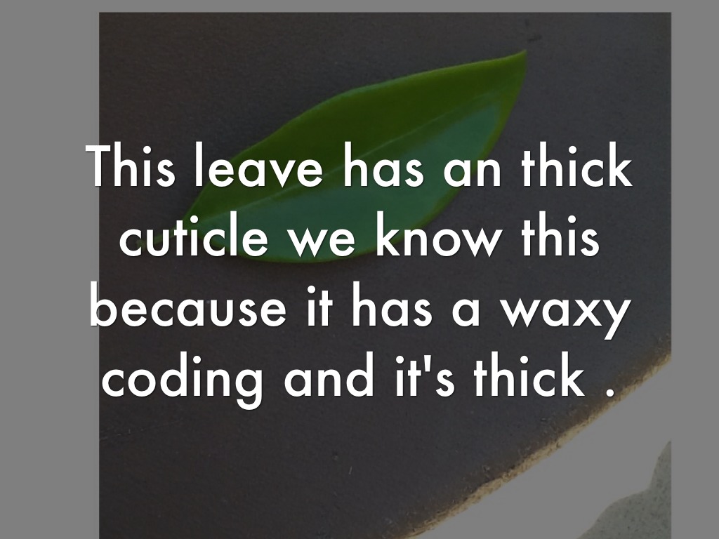 This leave has an thick cuticle we know this because it has a waxy coding and it's thick .