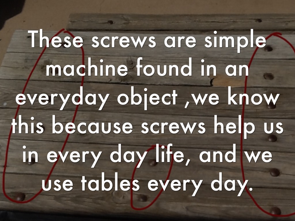 These screws are simple machine found in an everyday object ,we know this because screws help us in every day life, and we use tables every day.